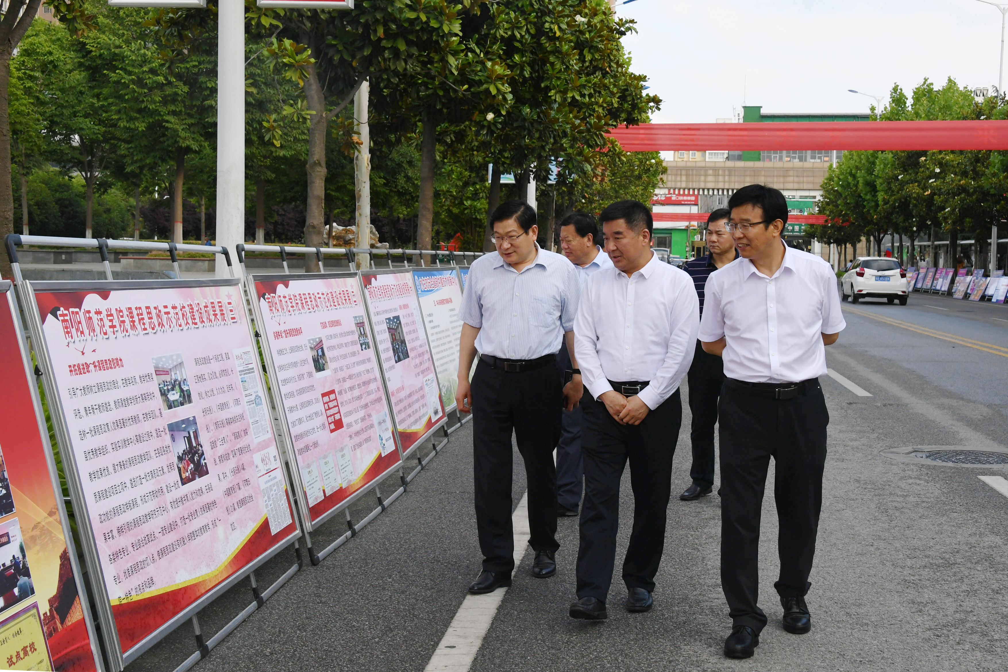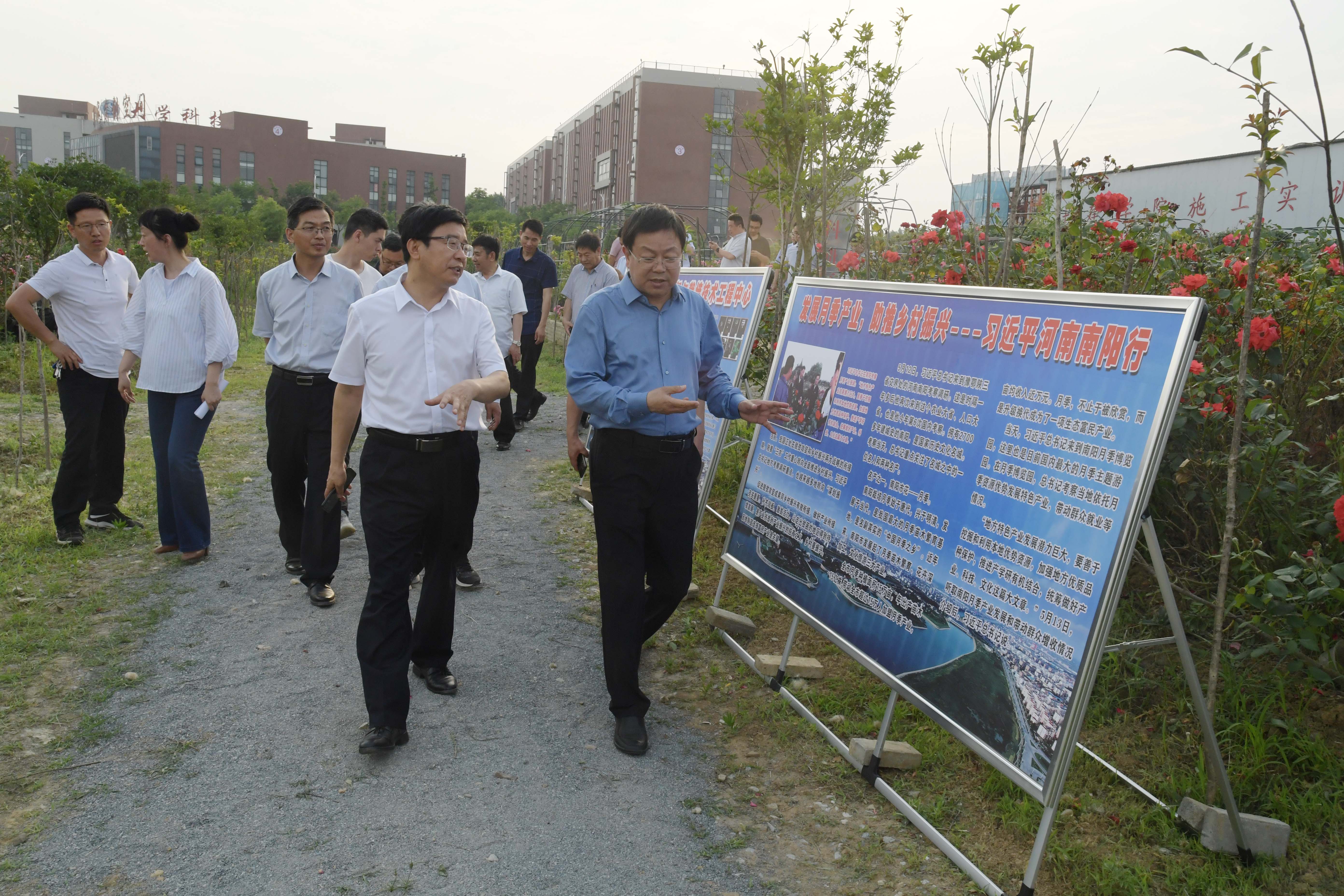 1.查看习近平总书记视察南阳、学校育人成果和课程思政示范校建设成果系列展板.jpg 2.查看智慧教室建设和运行情况.jpg 3.查看师范生“三笔字”书法教室.jpg 4.观看美术馆学生毕业作...
