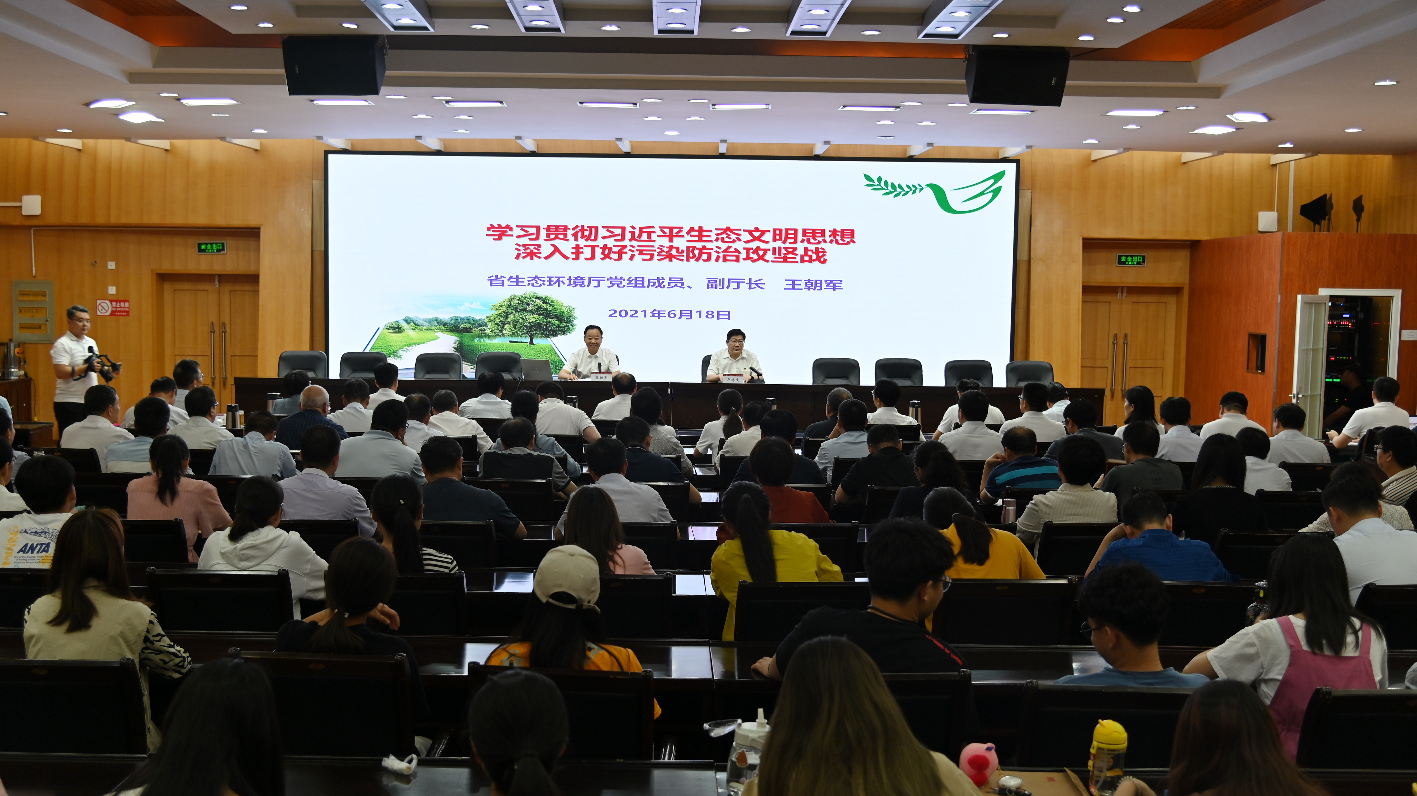 1.报告会现场.jpg 2.河南省生态环境厅党组成员、副厅长王朝军作报告.jpg 3.校党委书记卢志文讲话.jpg 4.报告会现场.jpg 本网讯(...