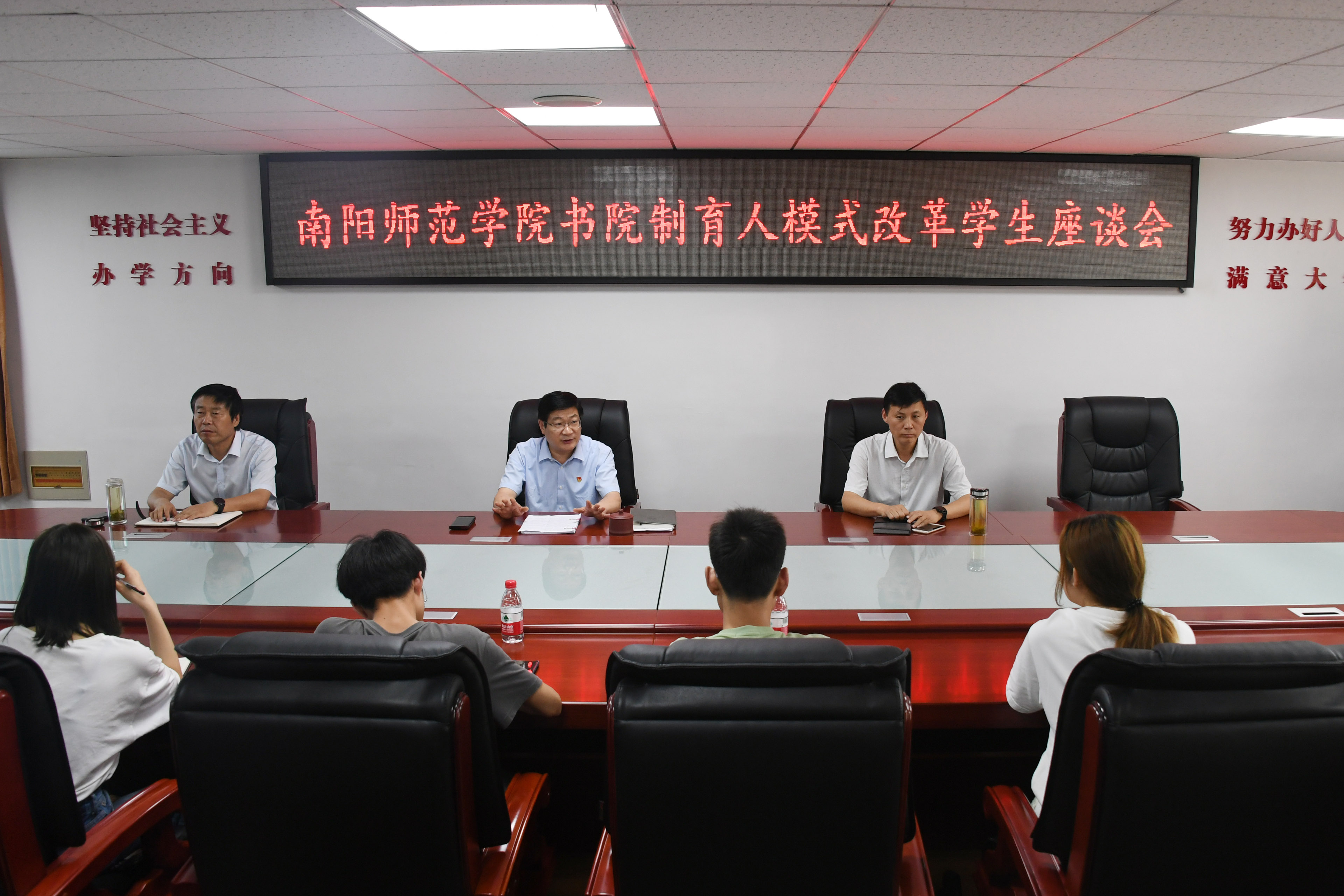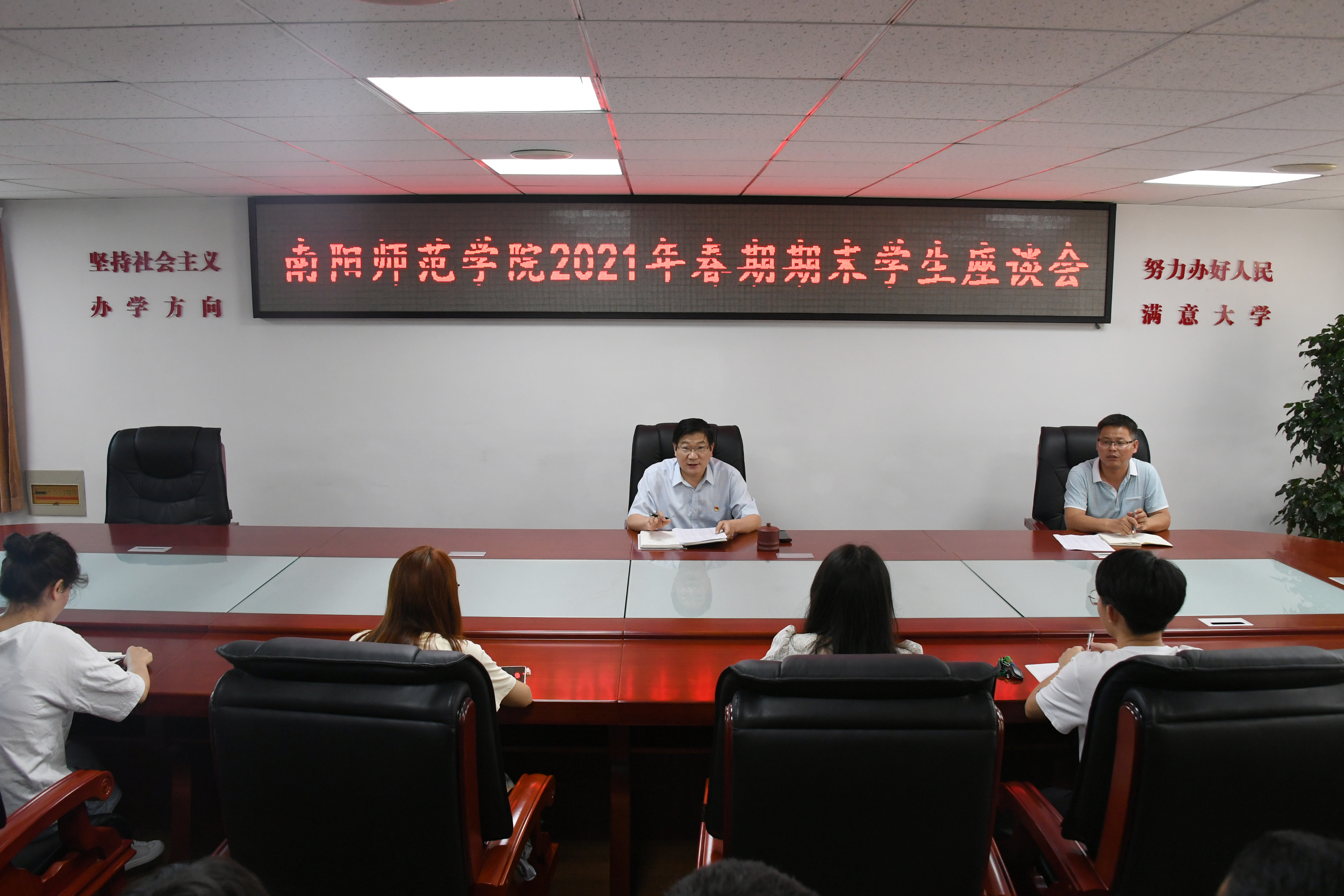1.座谈会现场.jpg 2.座谈会现场.jpg 本网讯(通讯员 杨眉/文 张坤毅/图)7月8日下午,校党委书记卢志文在办公大楼三楼会议室主持召开2021年春期期末学...