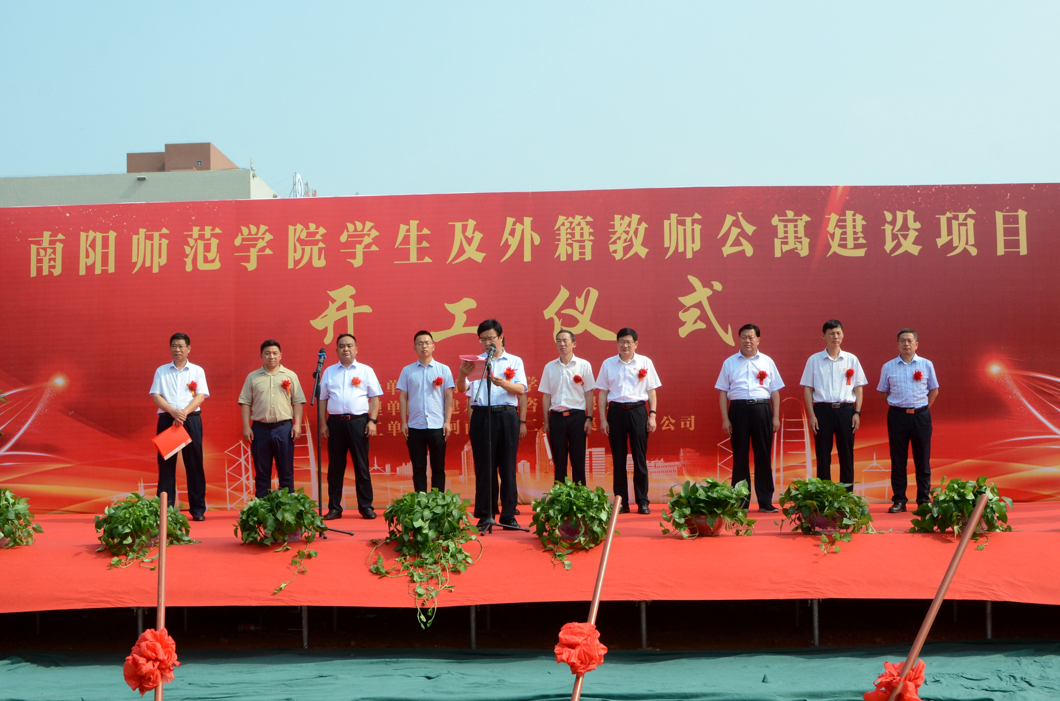 1.开工仪式现场.JPG 2.校长张宝锋致辞.JPG 3.副校长朱其春宣布学生及外籍教师公寓建设项目正式开工.JPG 4.校领导和施工单位、监理单位负责人共同为项目培土奠基.JPG 5....