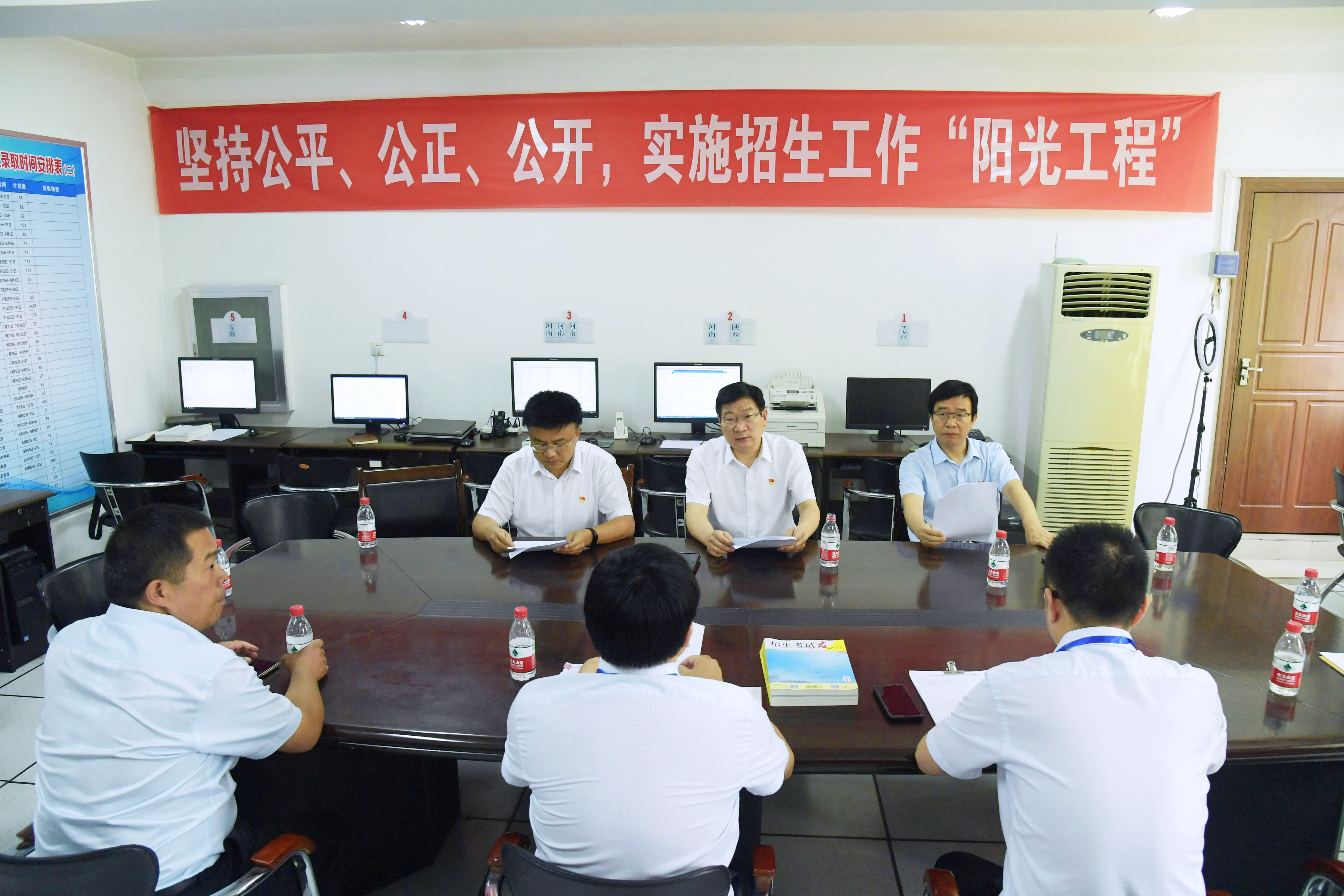 1.jpg 本网讯(通讯员 刘雅娣/文 宋清华/图)7月18日上午,校党委书记卢志文、校长张宝锋、副校长刘红林带领党委办公室负责同志来到中区办公楼六楼普通高校招生录...