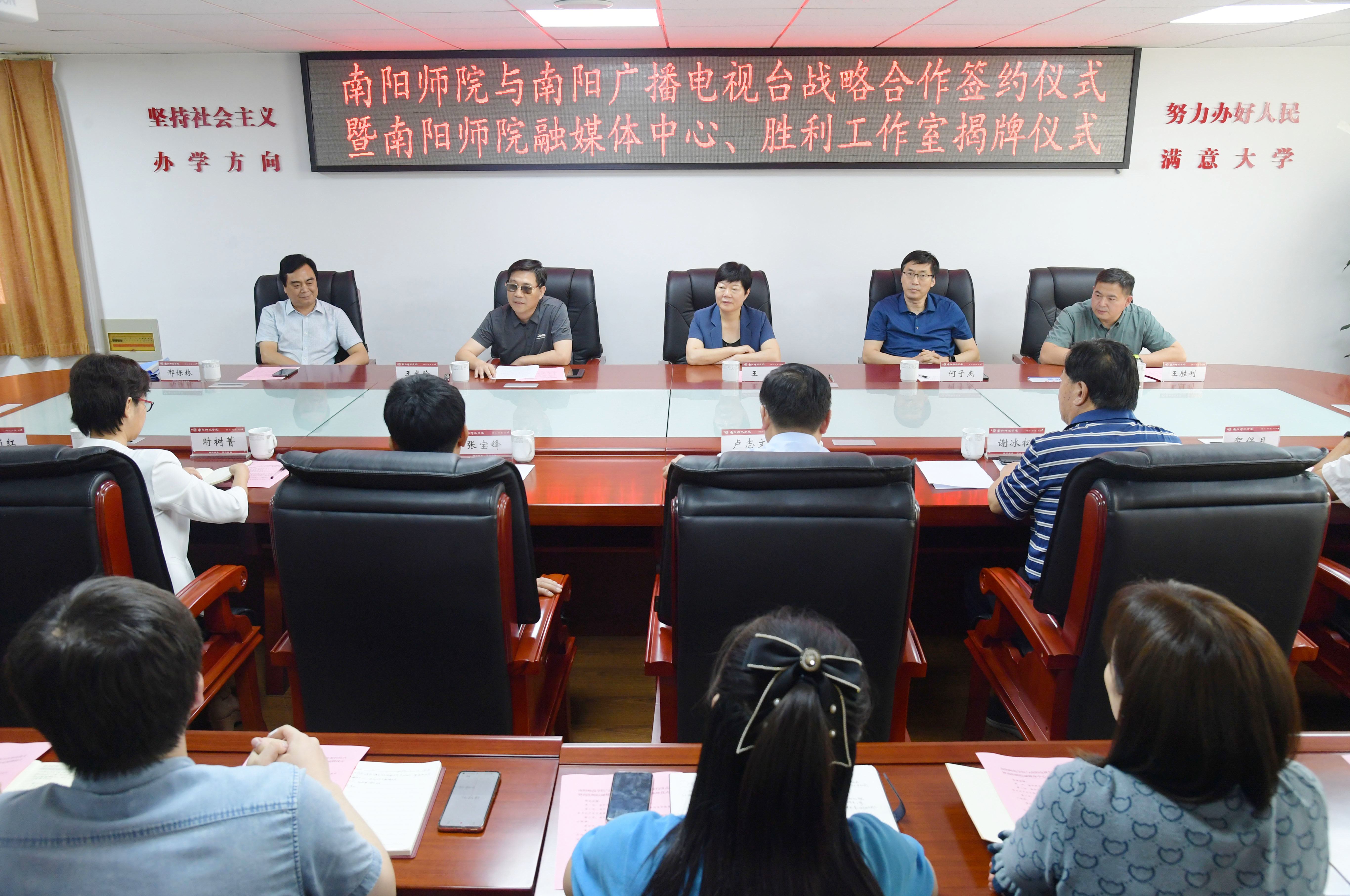 1.会议现场.jpg 2.会议现场.jpg 3.双方签署战略合作协议.jpg 4.350vip8888新葡的京集团党委书记卢志文为新葡的京官网融媒体中心授牌.jpg 5.350vip8888新葡的京集团校长张宝锋为胜利工作室授牌.jpg&n...