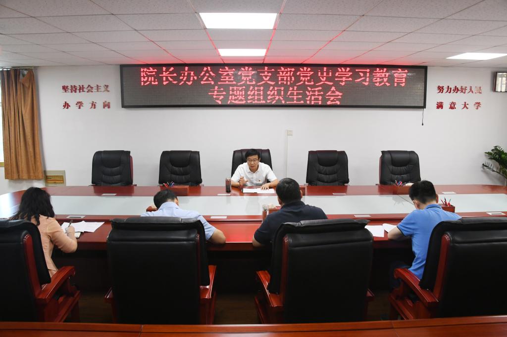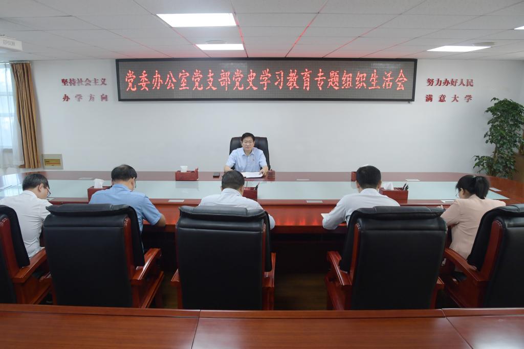 1.专题组织生活会现场2.专题组织生活会现场本网讯(通讯员 王一鸣/文 宋清华/图)按照校党委统一部署要求,9月9日,党委副书记、校长张宝锋以普通党员身份,参加所在的院长办公室党支部党史学习教育专题组织生活会,同支部党员一起围绕“学党史、悟思想、办实事、开新局”主题交流学习体会,对照检视问题,查找差距不足,明确努力方向。会上,支部负责人从“学史明理,加强党员教育”“学史增信,坚定政治信仰”“学史崇德,...