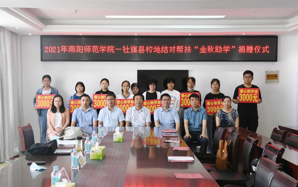 1.捐赠活动现场2.捐赠活动现场本网讯(通讯员 孙渔珽/文 宋清华/图)9月9日上午,校党委副书记、工会主席邵书峰带队赴社旗县开展“校地结对帮扶社旗县金秋助学”捐赠活动。社旗县委常委、县委办主任张少瀛、社旗县副县长张耀一、团社旗县委书记冯焱参加此次活动。邵书峰代表学校向10名受资助贫困大学生发放助学金,并对他们表示祝贺,对即将开启人生新征程的受助大学生提出几点希望:一要坚定理想信念,立志成才。希望各位同...