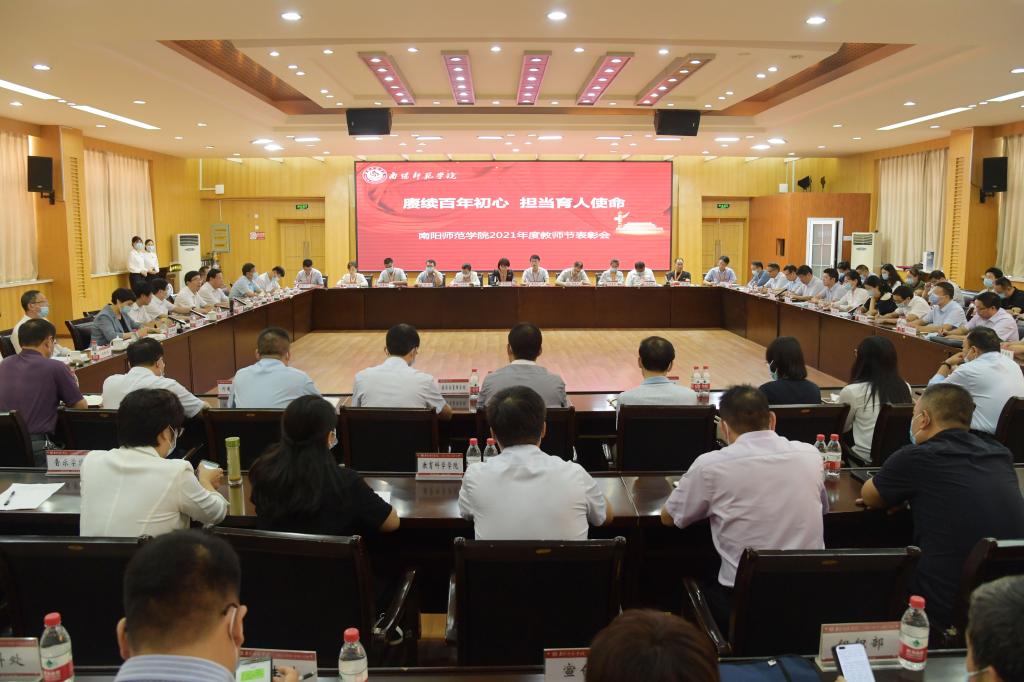 1.会议现场2.校党委书记卢志文、校长张宝锋为2021年度最美教师颁奖3.校党委书记卢志文讲话4.校长张宝锋讲话5.校党委副书记、工会主席邵书峰致开场词6.副校长孟静雅宣读2021年最美教师、优秀教师、优秀教育管理工作者表彰文件本网讯(李果/文 宋清华 余正道/图)9月10日上午,新葡的京官网在科技大楼三楼会议室召开350vip8888新葡的京集团2021年度教师节表彰会暨师德师风建设座谈会。校党委书记卢志文、校长张宝锋以及其他在校校领导出席会议。2021...