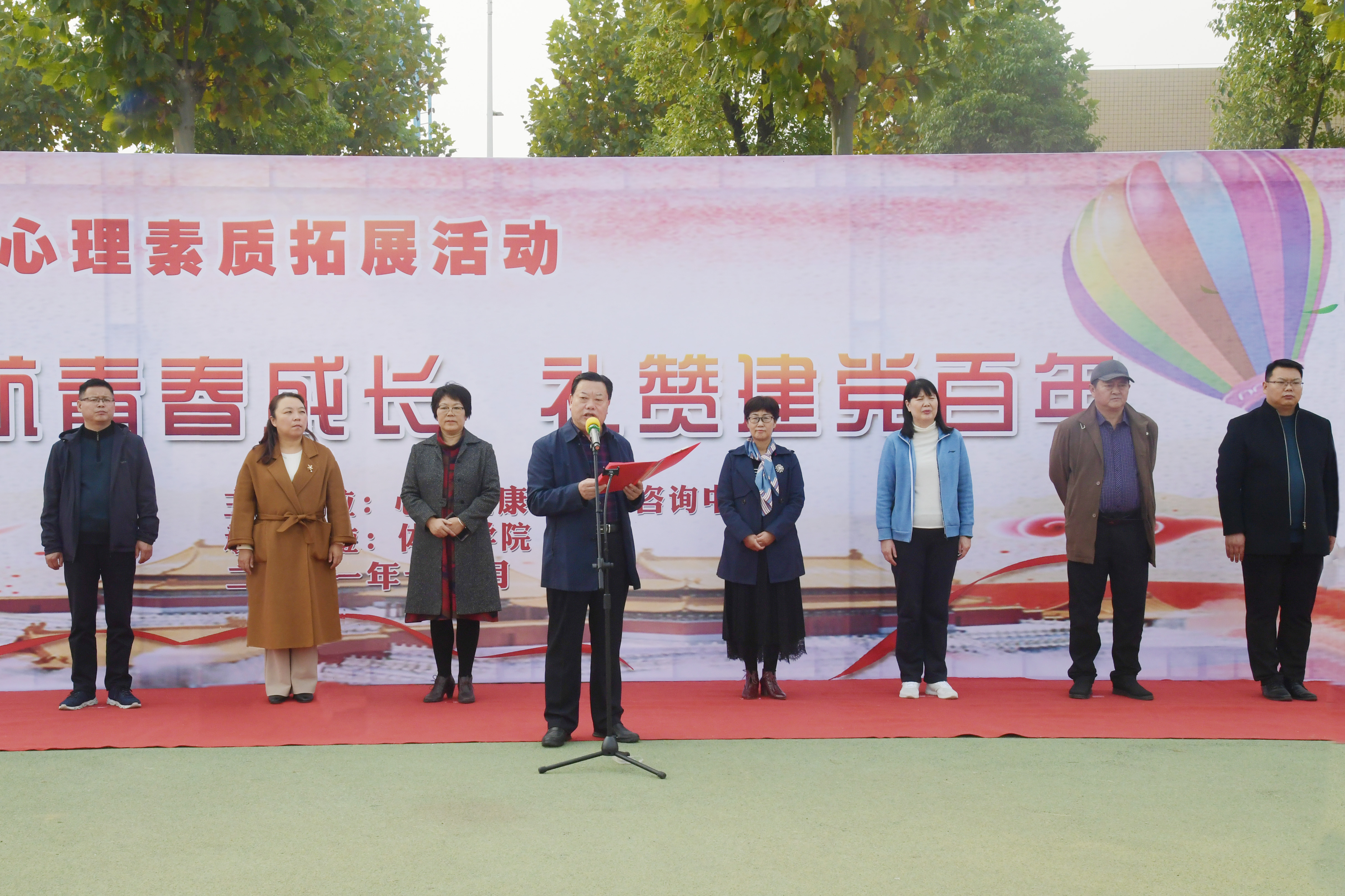 1.开幕式现场2.校党委副书记谢冰松讲话3.活动现场4.活动现场本网讯(通讯员 刘柏涛 徐鸿鹏/文 刘奥男 王占元/图)为进一步推动心理育人工作,提升大学生身心素质,提高学生心理自助与朋辈互助能力,11月3日下午,由心理健康教育与咨询中心主办,体育学院承办的主题为“护航青春成长,礼赞建党百年”心理素质拓展活动在西区素质拓展基地开展。党委副书记谢冰松出席开幕式,党委宣传部、校工会、校团委、党委学工部、创新创业学院...