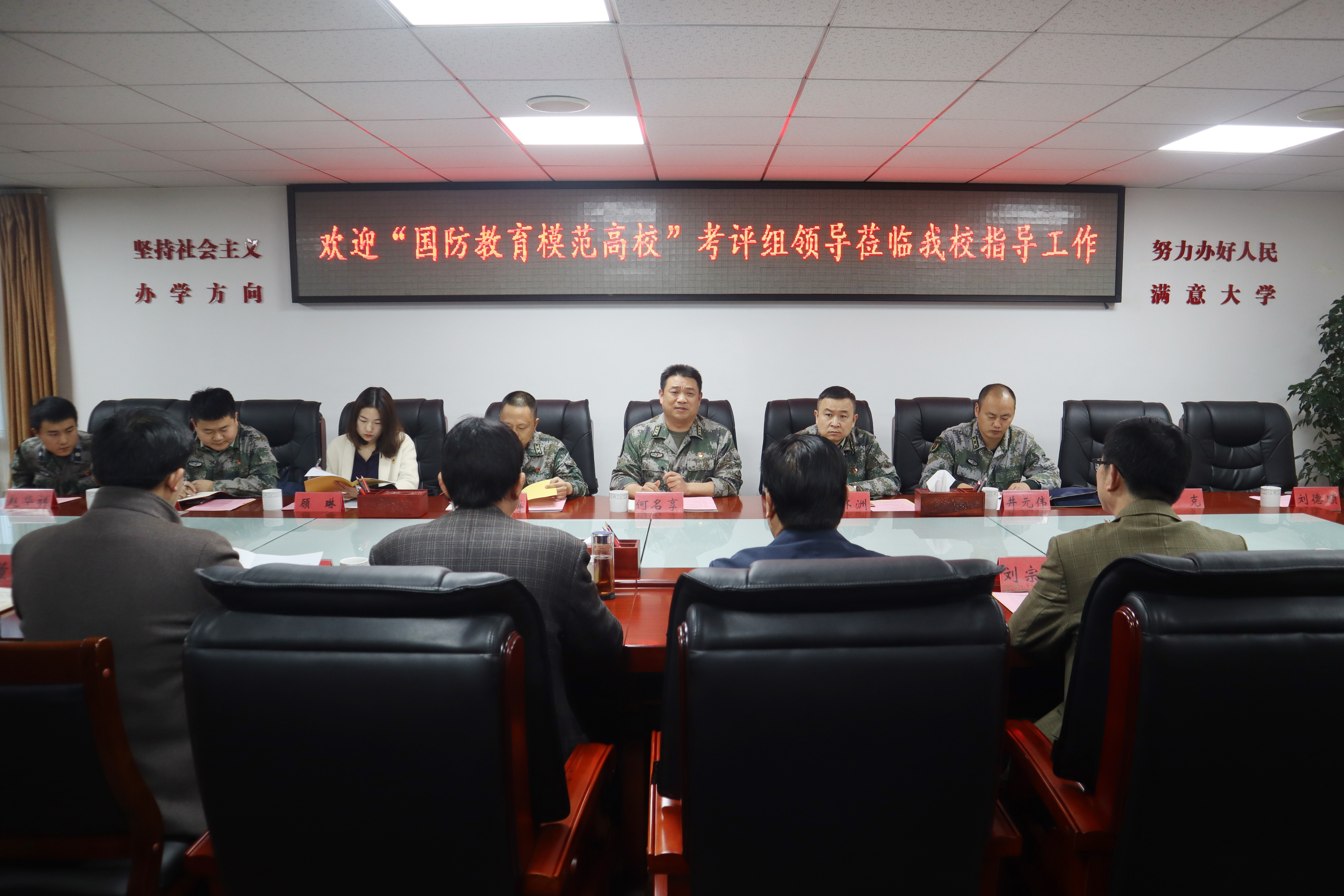 1.会议现场本网讯(通讯员 许海滨/文 薛永亮/图)近日,“国防教育模范高校”考评组何名享一行来新葡的京官网考核“国防教育模范高校”创建工作。学校武装部全体同志及各二级学院代表参加。会议由校党委副书记谢冰松主持。考评组组长、南阳军分区政治工作处上校主任何名享首先介绍了“国防教育模范高校”考评要求,然后对评选步骤进行说明:一是听取高校国防教育工作开展情况汇报,二是查看支撑材料,三是实地考察阵地建设。谢冰松代表...