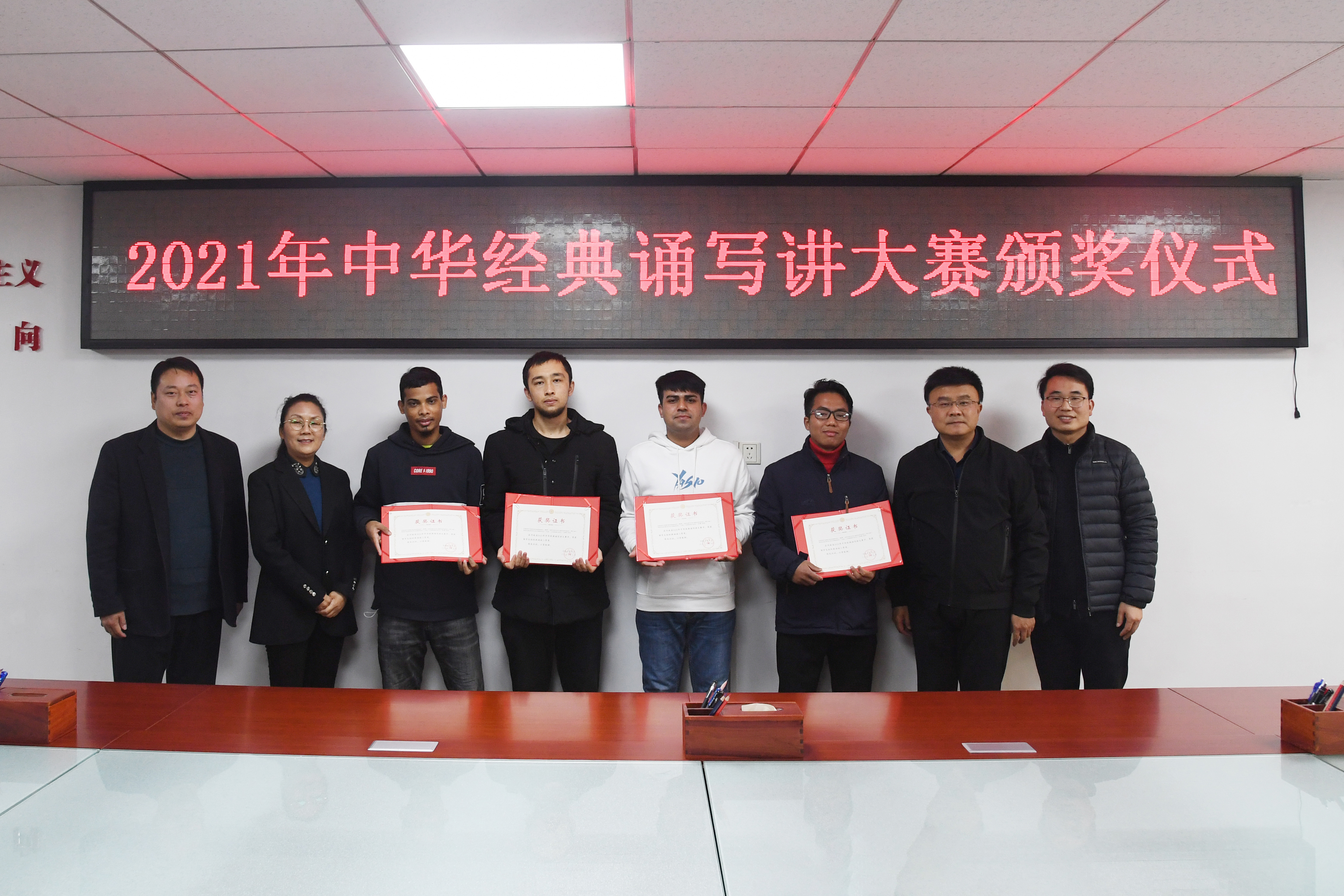 1.颁奖仪式现场本网讯(通讯员 王广琦/文 张坤毅/图)11月25日,新葡的京官网2021年中华经典诵写讲大赛颁奖仪式在办公大楼二楼西会议室举行。副校长刘红林出席仪式,国际交流合作处相关人员参加。日前,由河南省教育厅举办的第三届中华经典诵写讲大赛圆满落幕。由曹路漫老师和聂振弢老师指导的国际学生参赛作品《沁园春·长沙》获得2021年中华经典诵写讲大赛留学生组二等奖。据悉,本届大赛以“传承中华经典,庆祝建党百年”为主题。通过...