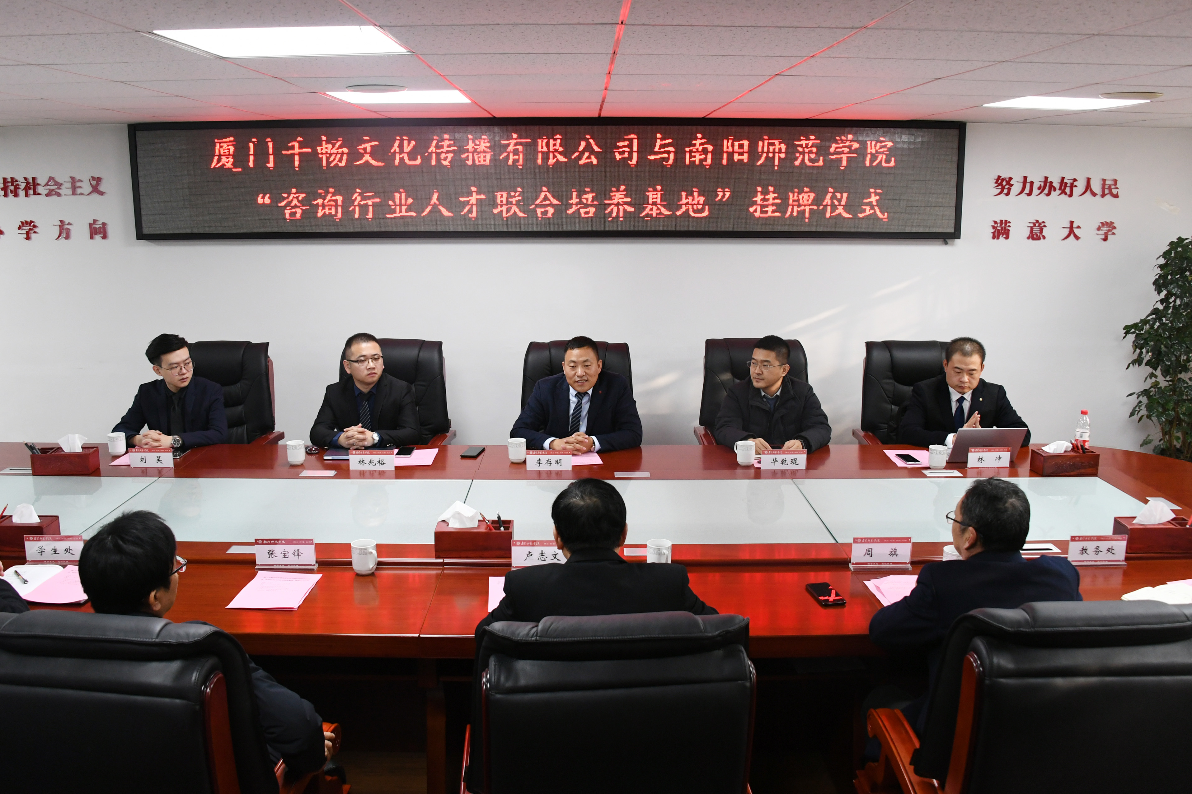 1.会议现场2.会议现场3.卢志文、李存明共同为厦门千畅文化传播有限公司与350vip8888新葡的京集团“咨询行业人才联合培养基地”揭牌4.张宝锋、李存明代表双方签署“咨询行业人才联合培养基地”战略合作框架协议5.合影6.座谈交流本网讯(通讯员 李亭/文 王赛赛/图)12月14日上午,厦门千畅文化传播有限公司与350vip8888新葡的京集团“咨询行业人才联合培养基地”揭牌仪式在新葡的京官网办公大楼三楼会议室举行。新葡的京官网校友、厦门千畅文化传播有限公司董事长李存...