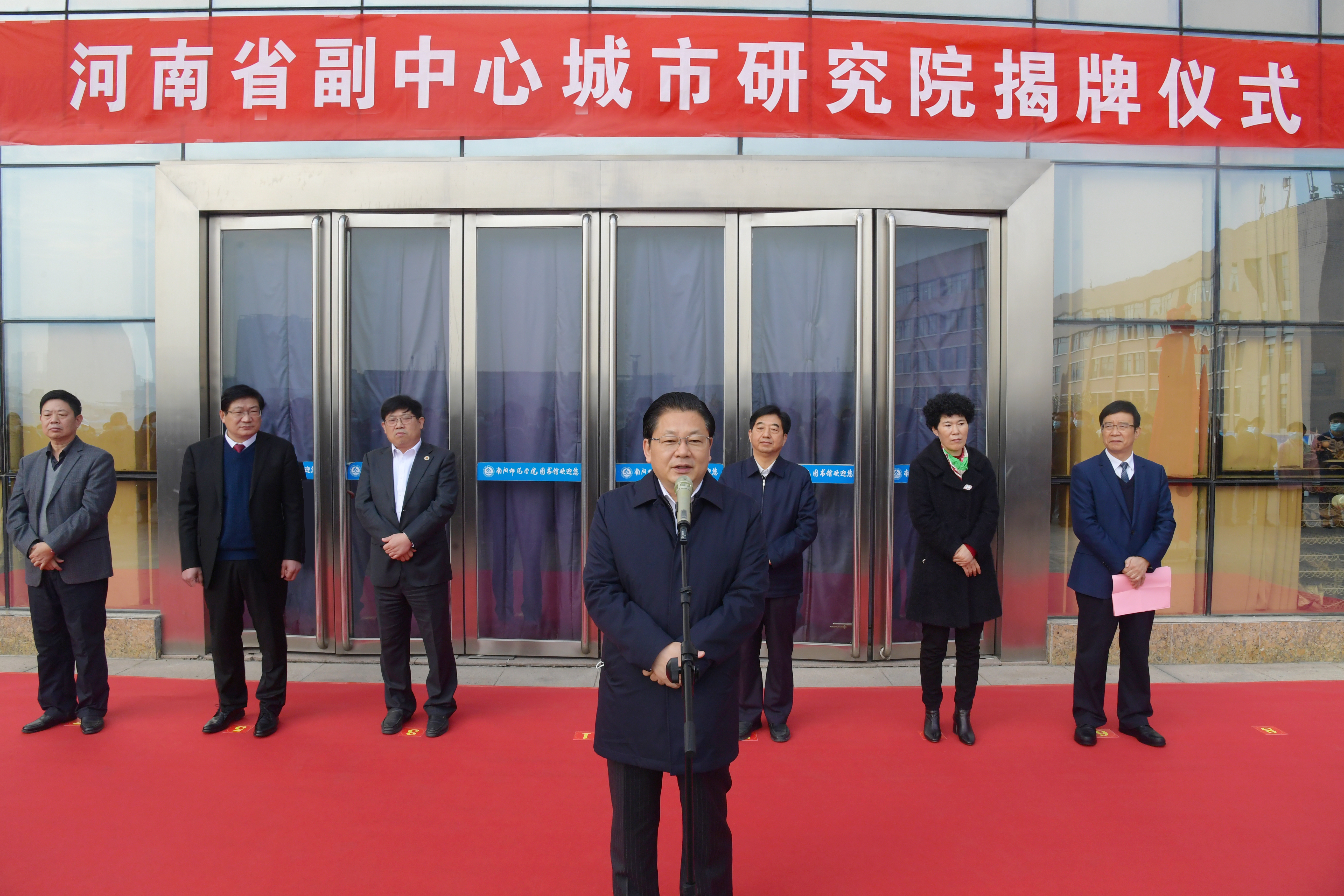 南阳市委书记朱是西致辞,他代表市委市政府向研究院的成立表示祝贺。朱是西说,在省第十一次党代会提出支持南阳建设副中心城市不到一个月的时间就成立了研究院,充分体现了350vip8888新葡的京集团主动融入全市发展大局的担当作为,必将为南阳建设副中心城市提供强有力的智力支持。他对研究院的发展提出了以下要求:一是聚焦产业强市研究,深入研究如何提升南阳市产业体系。二是要聚焦创新驱动研究,要发挥人才优势,加强交流合作,发挥创新引领作用。三是要聚焦城市能力升级研究,研究如何更好的完善城市功能,提升城市能级。四是要聚焦乡村振兴研究,深入研究如何更好解决“三农”问题。五是要聚焦城市治理体系研究,提高城市现代化治理水平。