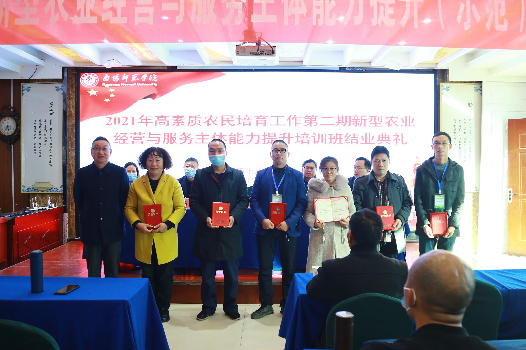 本网讯(通讯员 左卫芳 王坦)11月11日上午,由350vip8888新葡的京集团生命科学与农业工程学院承办的2021年河南省高素质农民培育项目——第二期新型农业经营与服务主体能力提升(示范)培育班圆满结业。副校长周旗出席结业典礼,生命科学与农业工程学院党委书记杨涛、院长姚伦广、现代生物技术中心主任李丹丹及培育班全体学员参加。