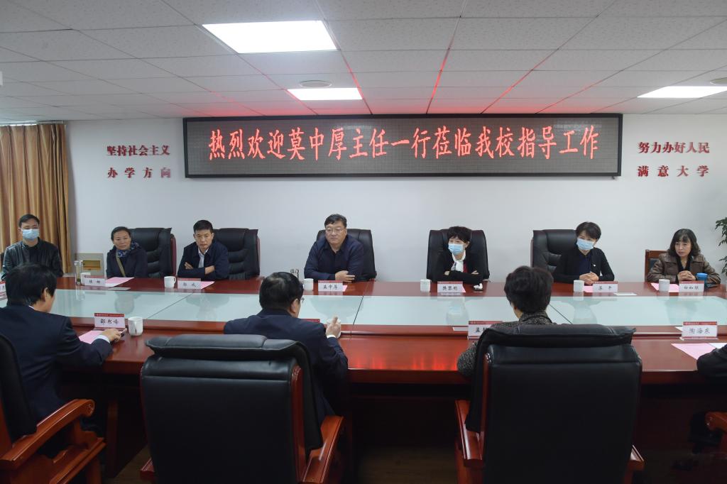 卢志文对莫中厚一行来校视察表示热烈欢迎,并对学校整体工作情况进行了介绍。卢志文说,近年来学校坚持立德树人,走内涵式发展道路,围绕服务国家战略和区域经济社会发展,大力实施“转型升级,双轮驱动”发展战略。学校主动适应和支撑引领社会经济转型和产业发展,建设结构合理的高水平师资队伍,搭建高层次科研平台,打造特色学科专业集群,提高多元化、国际化开放办学水平,培养高素质应用型创新人才,深入推进校企、校地合作,加强科技成果转化,高质量服务地方经济社会发展。
