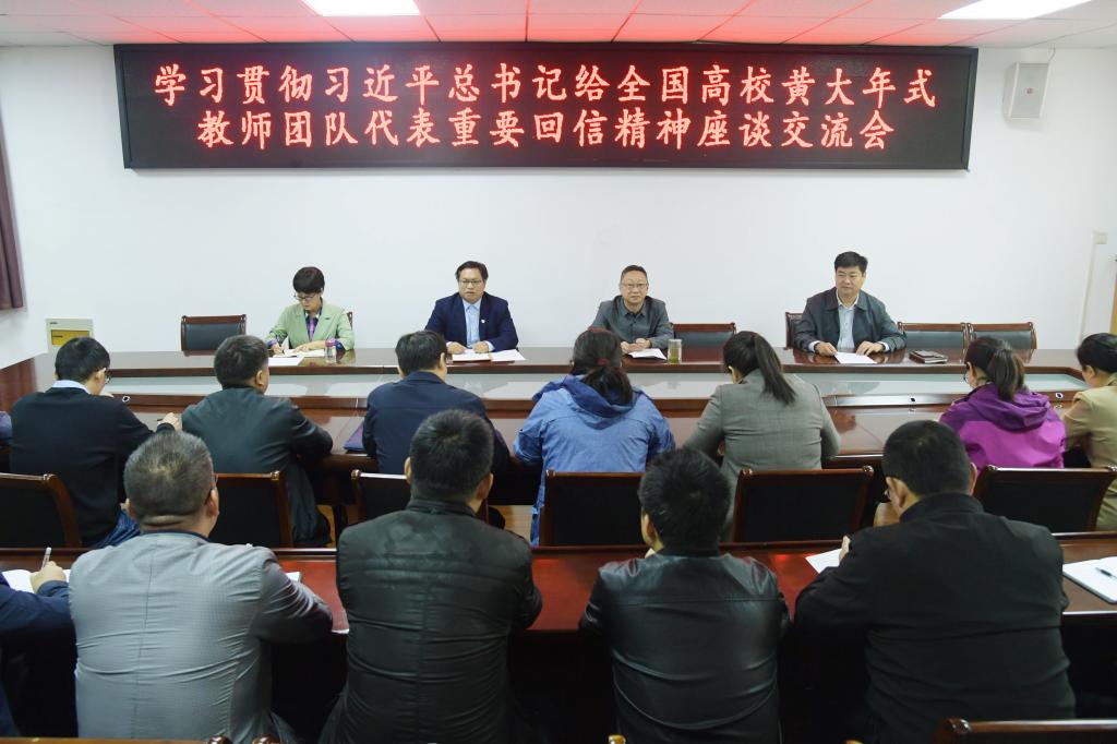 本网讯(通讯员 兰青/文 梁露予/图)10月6日上午,新葡的京官网学习贯彻习近平总书记给全国高校黄大年式教师团队代表重要回信精神座谈交流会在办公大楼一楼西会议室举行,副校长周旗出席会议,党委宣传部、人事处、科技处、社科处相关人员,省级黄大年教师团队“生物科学”教师团队代表和学校教师代表参加会议。教务处长谢海泉主持座谈会。