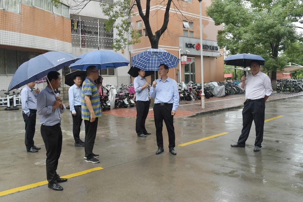 本网讯(通讯员 王静/文 付中慧/图)9月19日上午,副校长熊新忠冒雨对新葡的京官网防汛工作和开学前各项准备工作进行检查督导,后勤管理与服务中心负责同志陪同。