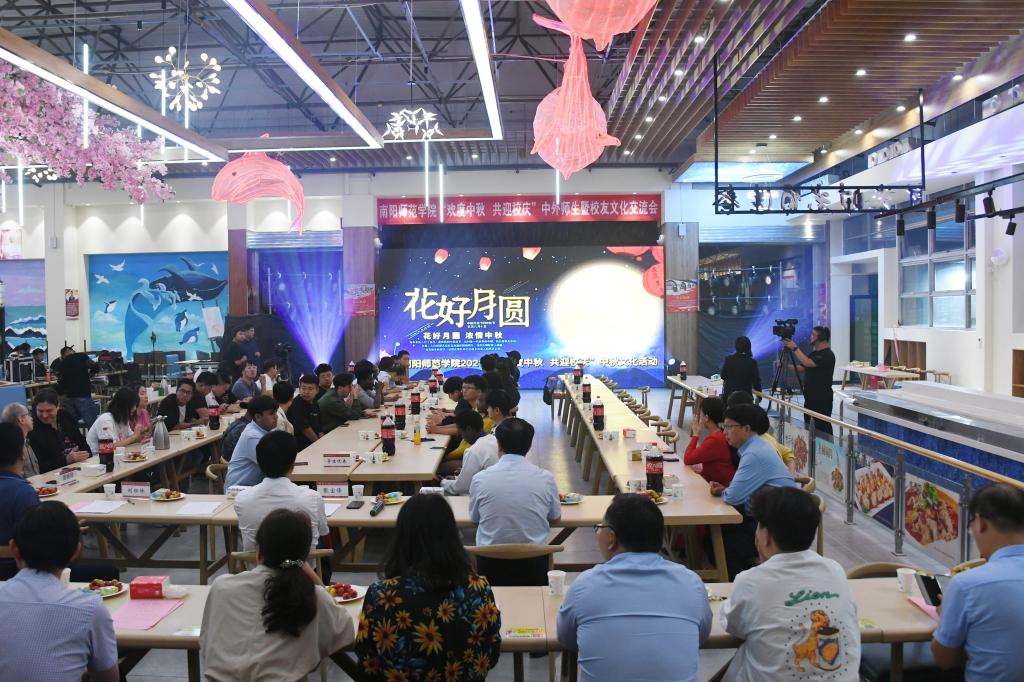 本网讯(通讯员 曹路漫 付中欣/文 付中慧 宋清华/图)北雁千里传相思,金秋九月共团圆。9月17日晚,在中国传统佳节——中秋节来临之际,恰逢新葡的京官网建校70周年,为弘扬中华民族优秀传统文化,加强中外师生文化交流,增进师生和校友之间的情谊,营造浓郁的知校爱校氛围,国际教育学院与校友工作办公室携手承办350vip8888新葡的京集团“欢度中秋 共迎校庆”中秋文化活动。校长张宝锋、副校长罗永松、刘红林出席,部分校友代表、中外师生代表参加。在疫情防控常态情况下,未能到场的师生和校友采用线上直播形式参与互动,并纷纷发来祝福视频。活动由副校长刘红林主持。