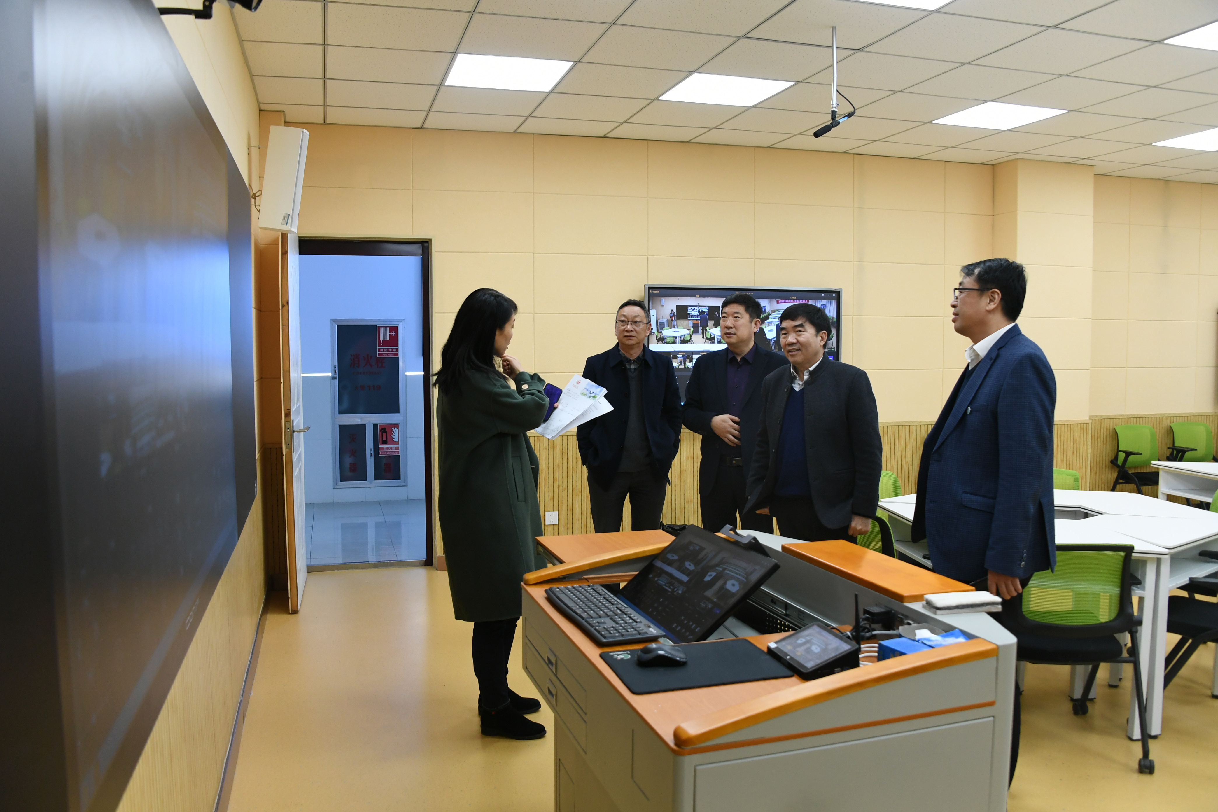 会后,专家组一行到科技大楼实地查看智慧教室、微格教室和三笔字教室建设情况。(编审 张永祥)