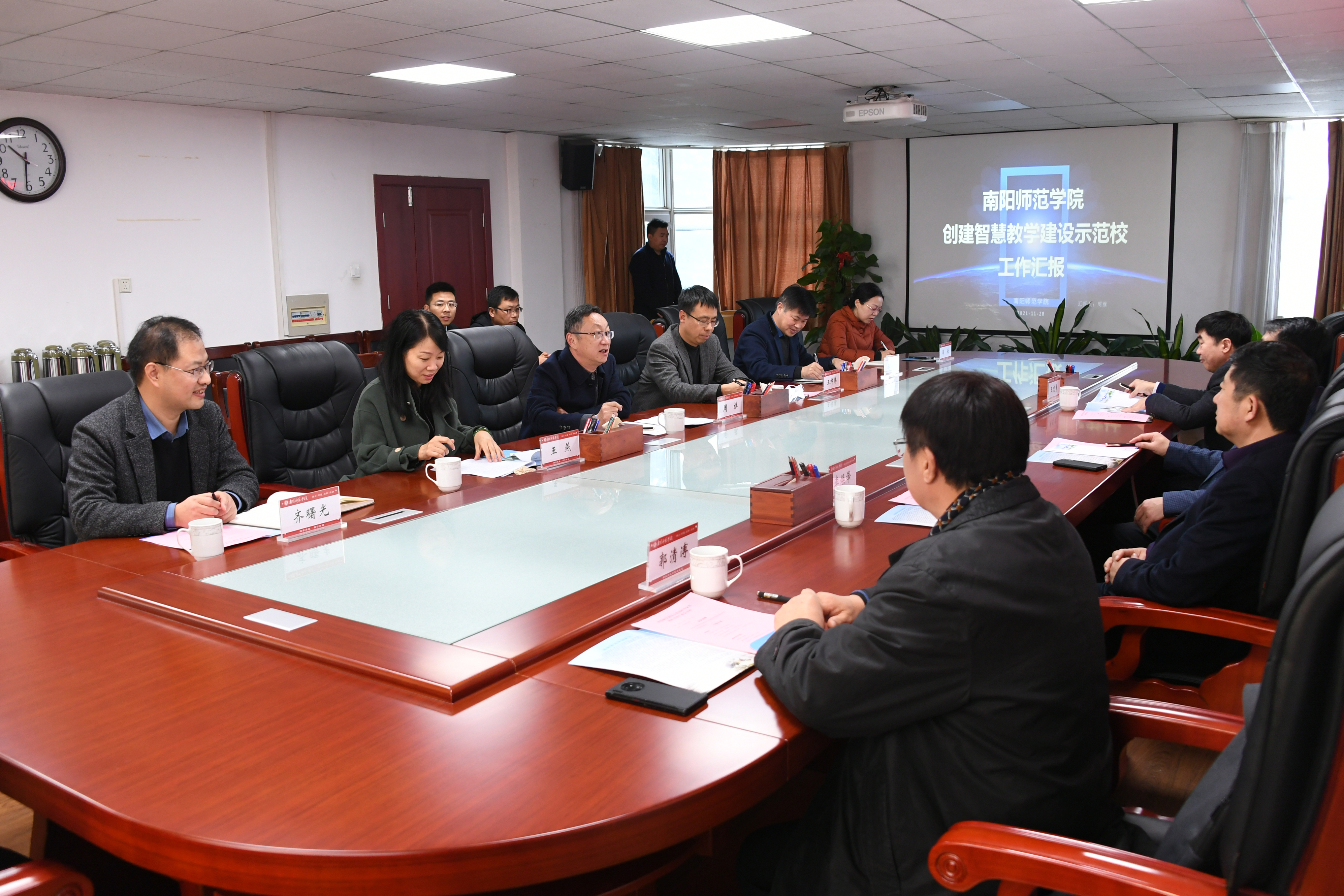 本网讯(通讯员 齐曙光/文 王占元/图)11月28日,河南省智慧教学建设示范高校专家组成员——河南理工大学副校长沈记全、河南工业大学副校长李焕锋、河南财政金融学院副校长王忠勇、河南智慧教学管理服务中心副主任郭清溥一行四人到新葡的京官网实地考察。新葡的京官网在办公大楼二楼会议室举行汇报会。副校长周旗出席会议,教务处、国有资产与设备管理处、信息化管理中心、教师发展中心等相关单位负责同志参加会议。