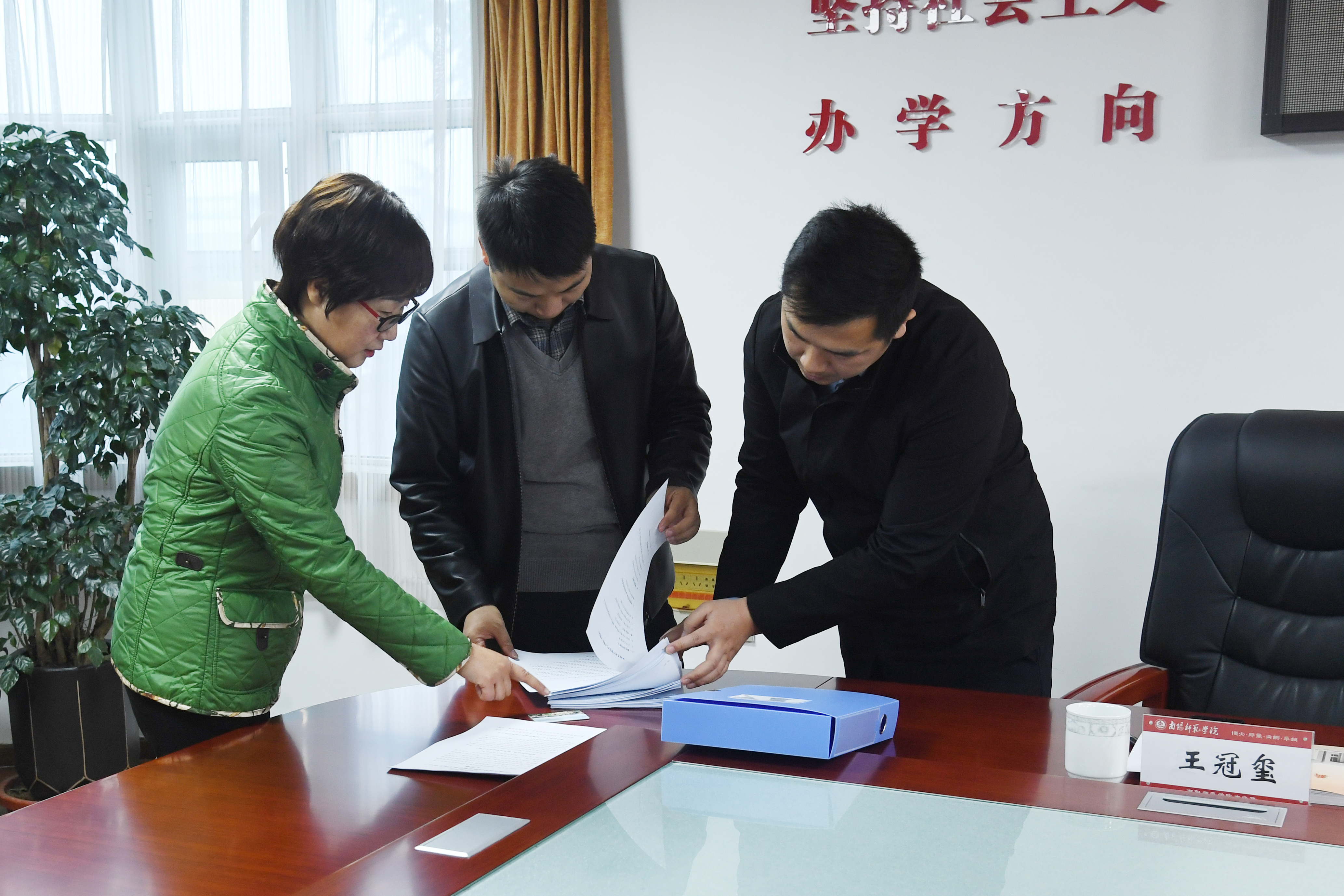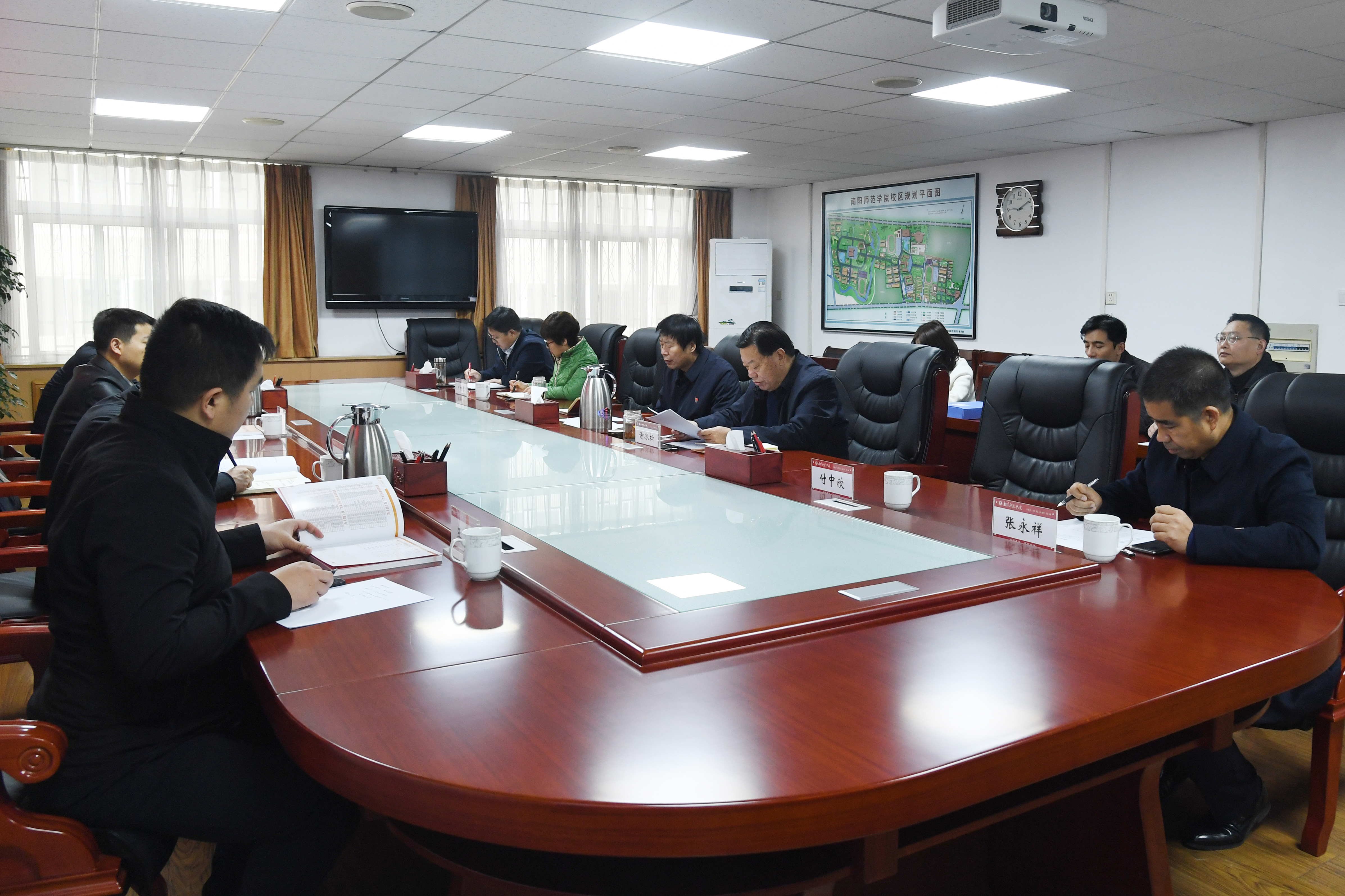 本网讯(通讯员 王彬/文 刘奥男 余正道/图)12月8日,河南省教育厅思政处副处长任龙云、河南农业大学党委宣传部副部长周红飞、郑州轻工业大学软件学院学工办主任王冠玺、河南省教育厅思政处四级主任科员郑燕辉一行到新葡的京官网开展全省高校网络思政分中心中期评估验收工作。校党委副书记、工会主席邵书峰,校党委副书记谢冰松出席,党委宣传部、校友工作办公室、新闻与传播学院、融媒体中心等部门相关人员参加。邵书峰主持汇报会。