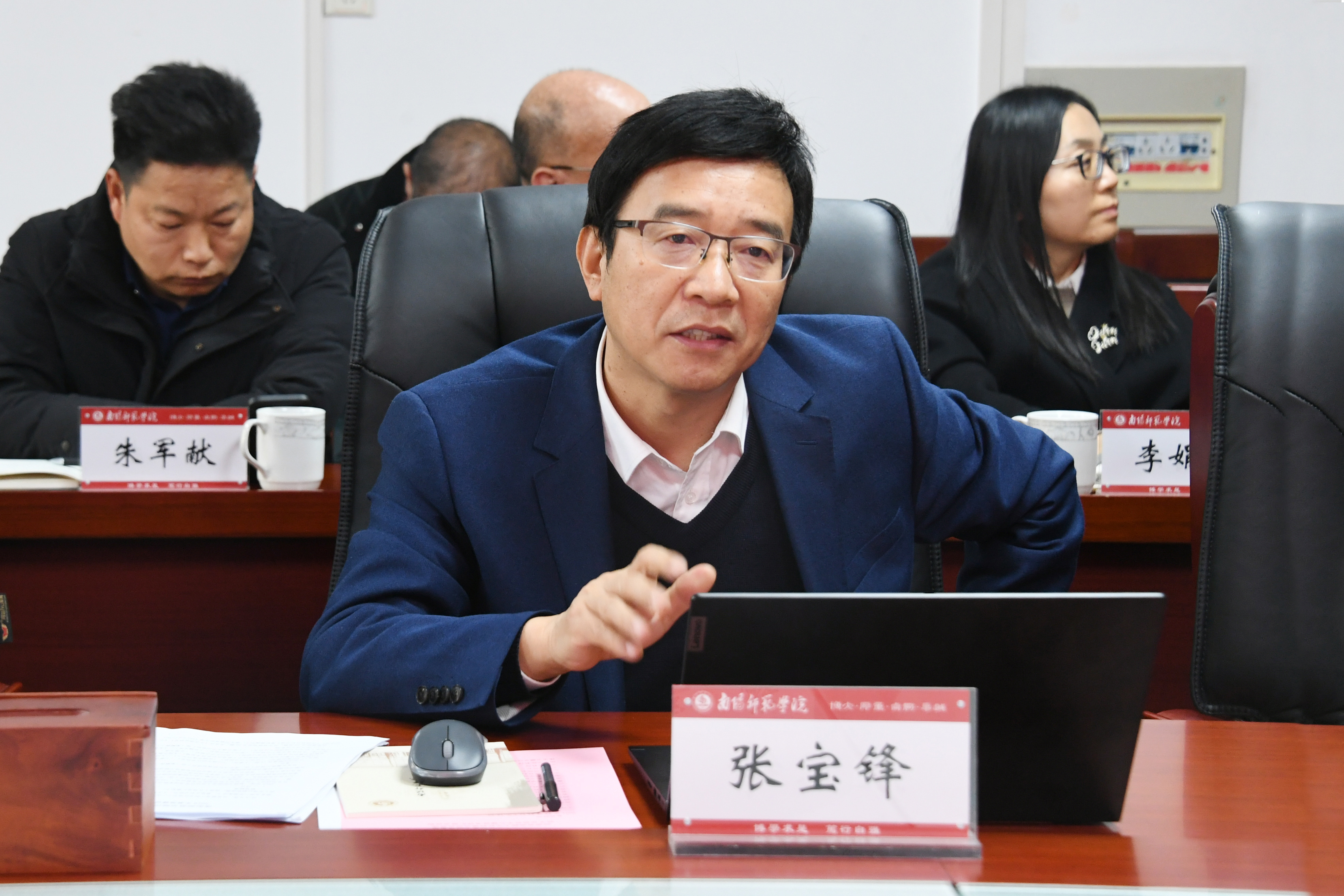 张宝锋致辞并对汉文化研究中心建设情况进行了专题汇报。张宝锋对省教育厅、特别是社语处长期以来对学校的关心、指导和帮助表示感谢。他详细汇报了汉文化研究中心近两年的建设情况,特别是在人才培养、科学研究、社会服务和文化传承创新中产出的的高水平成果、取得的标志性成绩,以及汉文化研究中心今后的努力方向和具体措施。