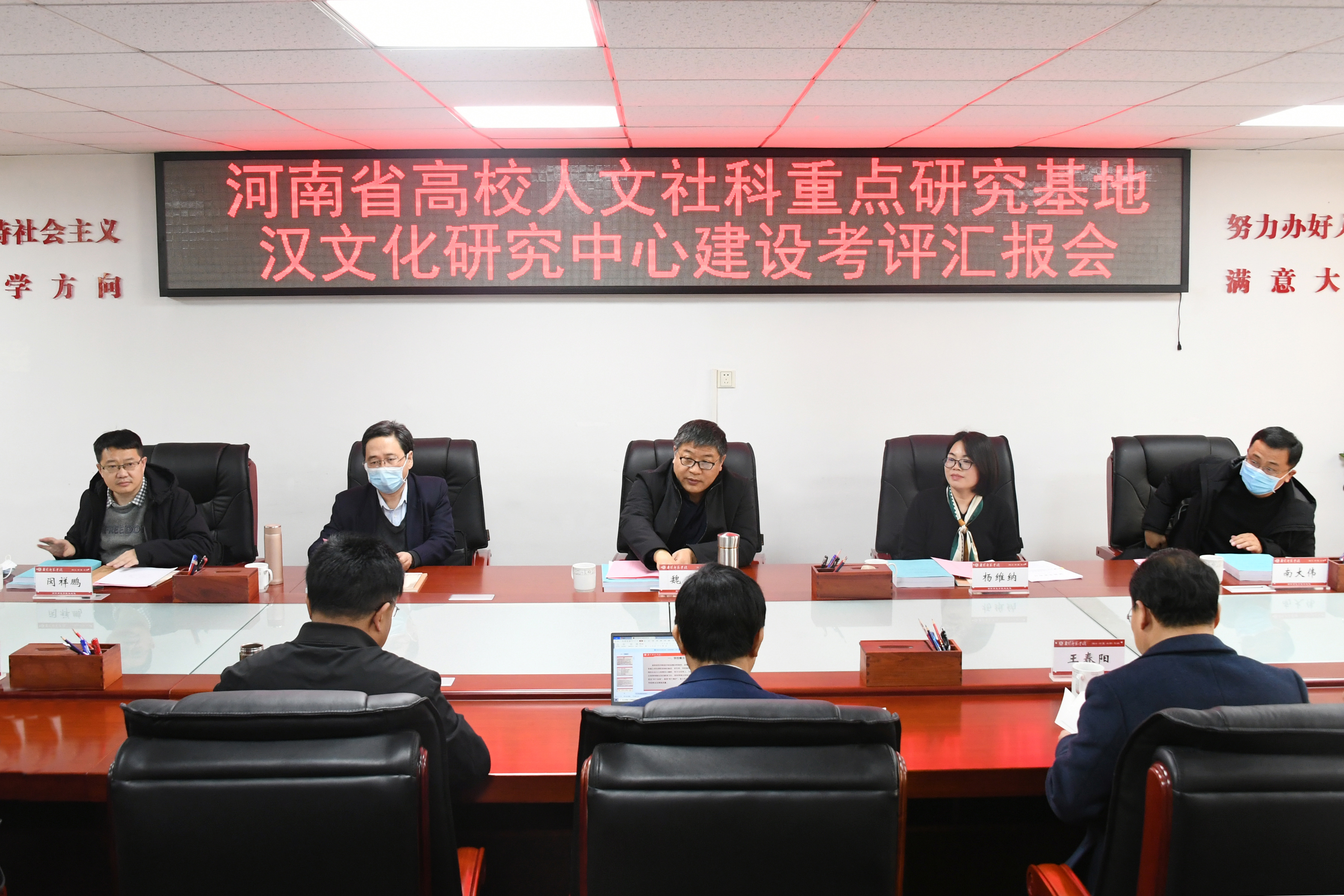 本网讯(通讯员 张恒杰/文 师珂欣 张坤毅/图)12月21日下午,河南省教育厅社会科学研究与语言文字应用管理处一级调研员、河南省高校智库联盟政治指导员魏军,河南省教育厅社会科学研究与语言文字应用管理处副处长杨维纳,郑州大学历史学院教授袁延胜,河南大学教育部人文社科基地“黄河文明与可持续发展研究中心”教授闵祥鹏,河南理工大学马克思主义学院教授南大伟等专家莅临新葡的京官网,就新葡的京官网省高校人文社科重点研究基地汉文化研究中心建设情况进行考核。校长张宝锋、副校长刘红林出席会议,汉文化研究中心以及汉文化学科群各方向带头人、学术骨干等20余人参加会议。会议由刘红林主持。