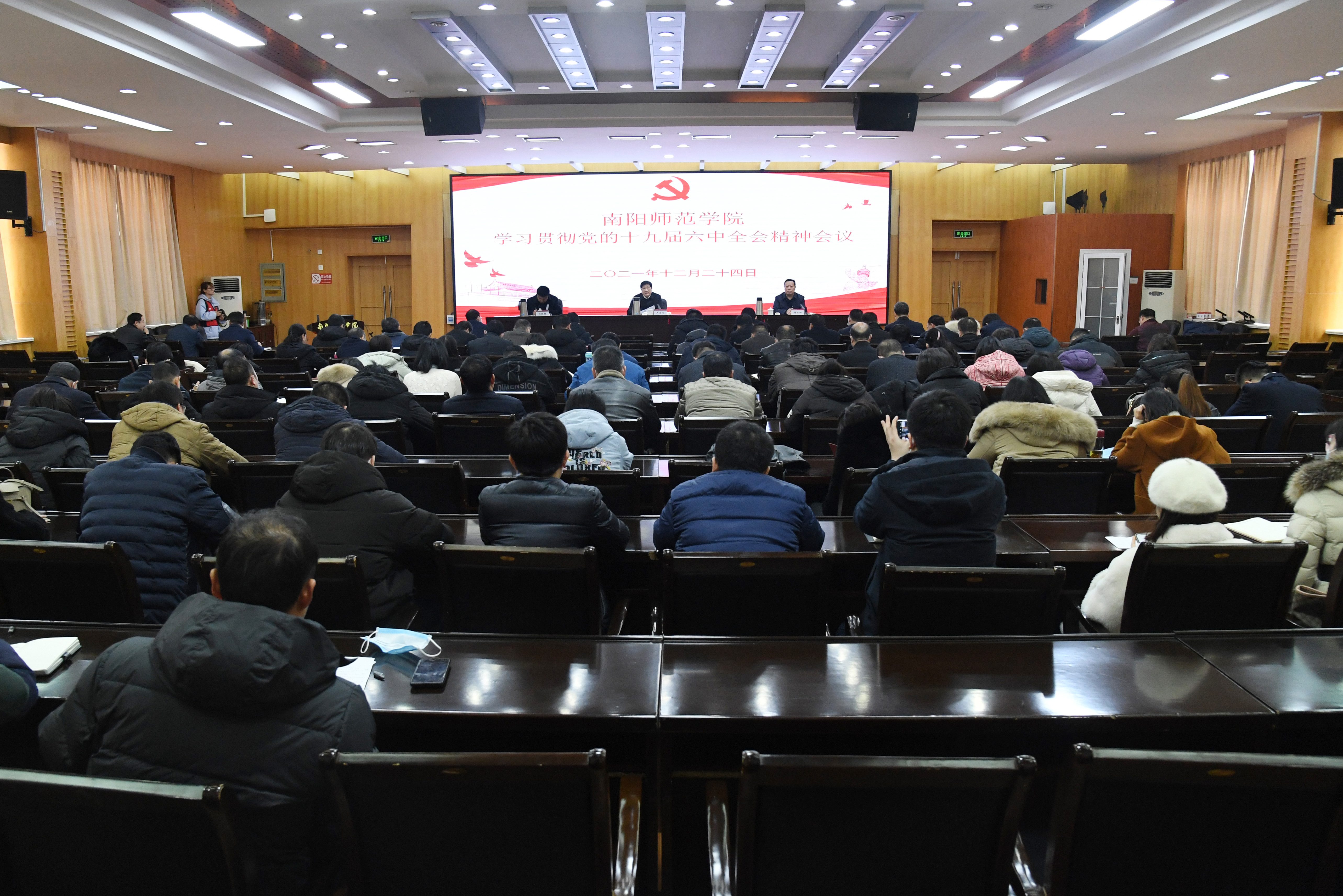 卢志文解读了党的十九届六中全会的重大意义,这次全会是在党的历史上具有里程碑意义的重要会议。全会审议通过的《中共中央关于党的百年奋斗重大成就和历史经验的决议》,是一篇光辉的马克思主义纲领性文献,是实现中华民族伟大复兴的行动指南。习近平总书记发表的重要讲话,审时度势、统揽全局,站位高远、思想深邃,具有很强的政治性、思想性、理论性、指导性。学习宣传贯彻全会精神,是学校当前和今后一个时期的重大政治任务。全校师生要深入领会总结党的百年奋斗重大成就和历史经验的重大意义,深入领会习近平总书记的重要讲话精神深刻内涵,深入领会中国特色社会主义进入新时代的历史性成就和历史性变革,深入领会以史为鉴、开创未来的重要要求,紧跟习近平总书记奋进“第二个百年”新的伟大征程,勇担“争当表率、争做示范、走在前列”光荣使命,谱写新时代中原更加出彩的绚丽篇章,为实现中华民族伟大复兴努力奋斗。