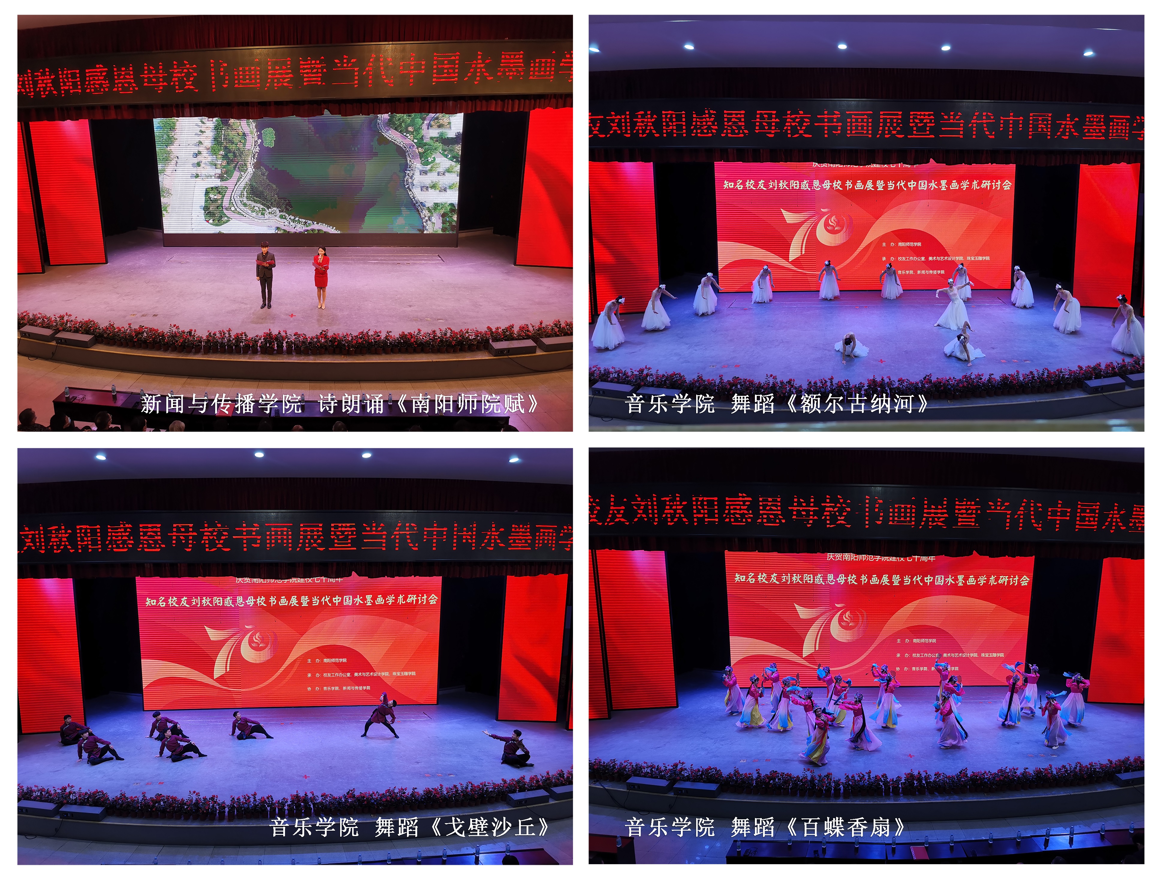 活动在新闻与传播学院的诗朗诵《南阳师院赋》中拉开帷幕,音乐学院的舞蹈作品《额尔古纳河》《戈壁沙丘》《百蝶香扇》展现了新葡的京官网学生扎实的专业功底,音乐学院院长马奇一曲《我和我的祖国》将现场气氛推向高潮。