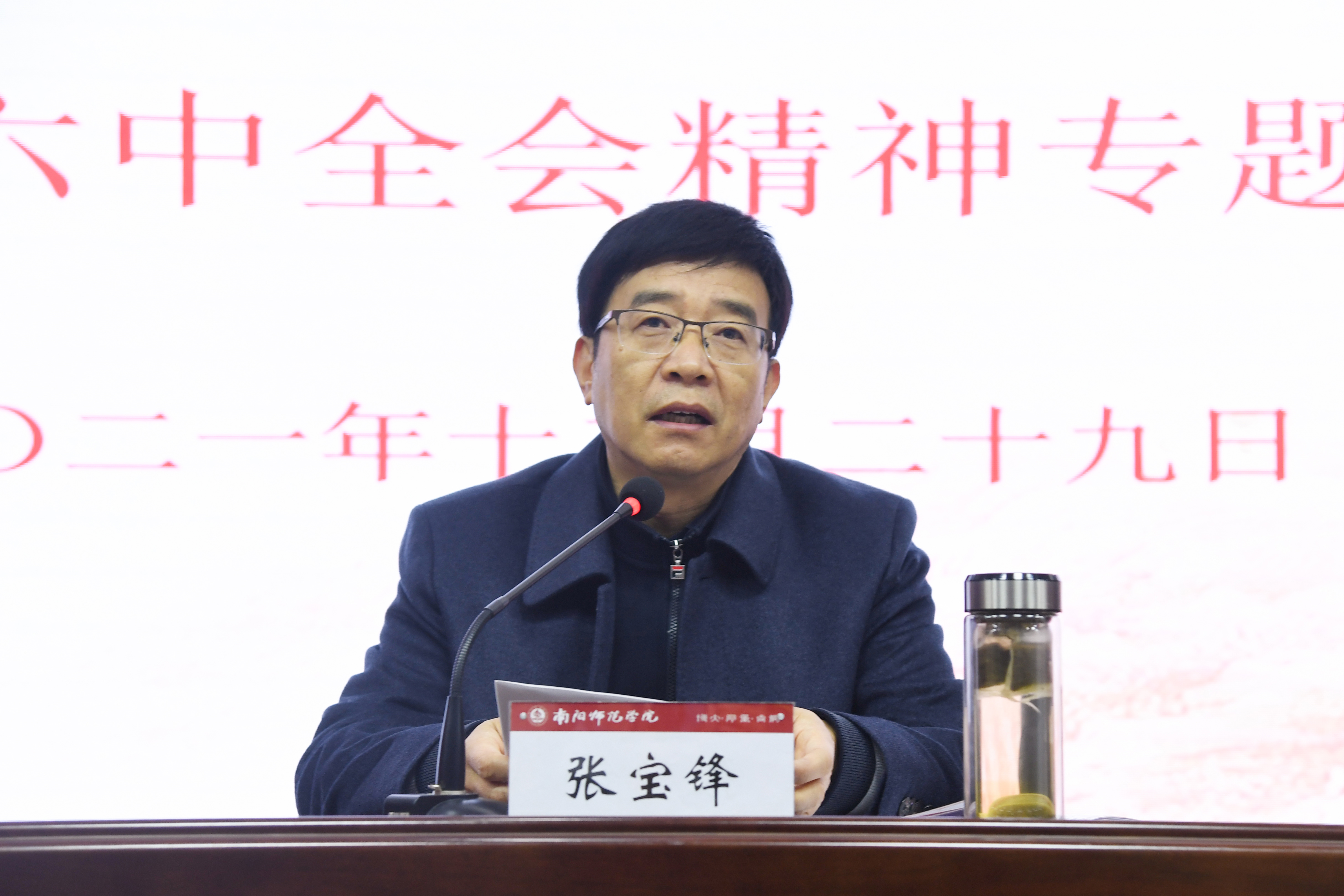 张宝锋从“理想创建、核心创立、宗旨创设、理论创新、制度创建、精神创铸、改革创举、复兴创业、统战创同、天下创和、军队创强、党建创先”12个关键词出发,系统讲解了《中共中央关于党的百年奋斗重大成就和历史经验的决议》,深刻阐述了中国共产党百年奋斗的五大历史意义和党奋斗百年积累的十条宝贵历史经验。张宝锋要求全体师生党员深入认识全会精神的重大意义和深远影响,准确把握全会精神实质,把思想和行动统一到党中央的决策部署上来,推动学史明理再深化、学史增信再锤炼、学史崇德再提升、学史力行再出发,不断把中华民族伟大复兴事业推向前进,为学校事业发展做出新的更大贡献。
