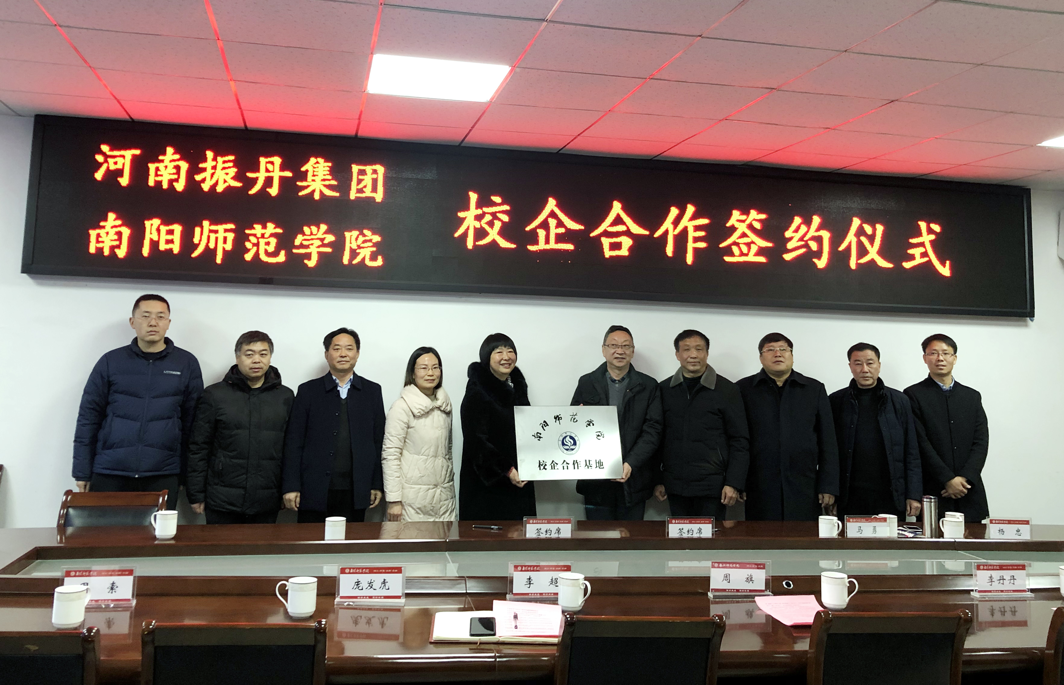 仪式上,周旗和赵新峰签署校企合作协议,并授予河南振丹集团“350vip8888新葡的京集团校企合作基地”牌匾。